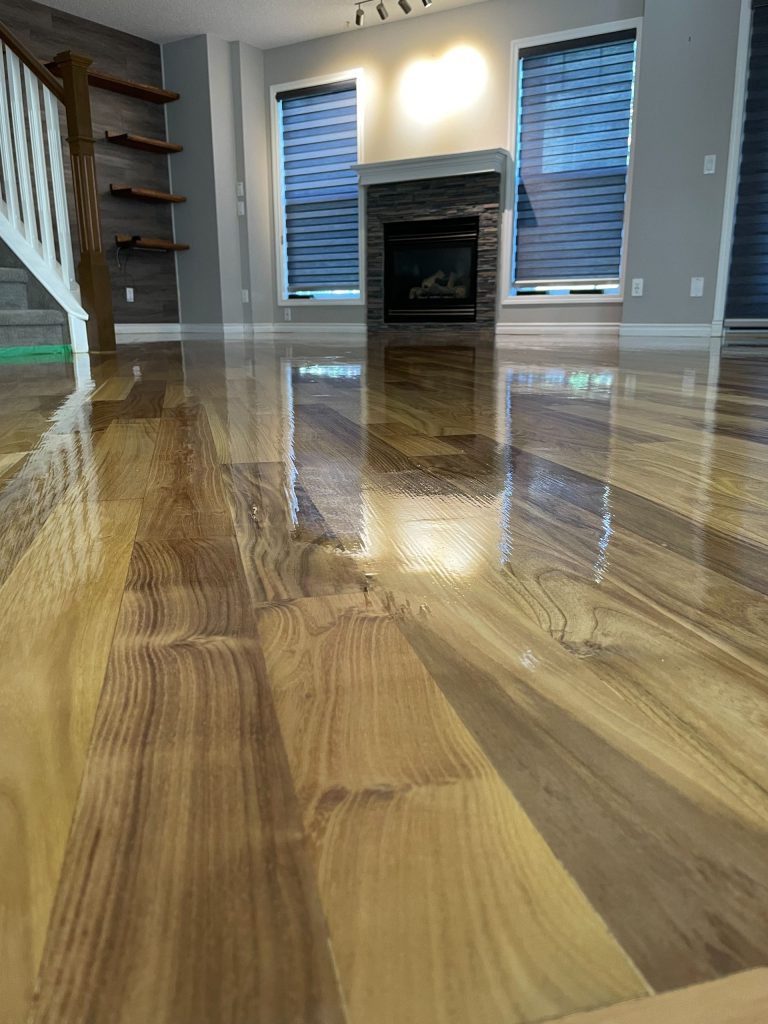 1. Initial Assessment: We begin with a thorough inspection of your hardwood floors to determine the best approach for polishing and coating.